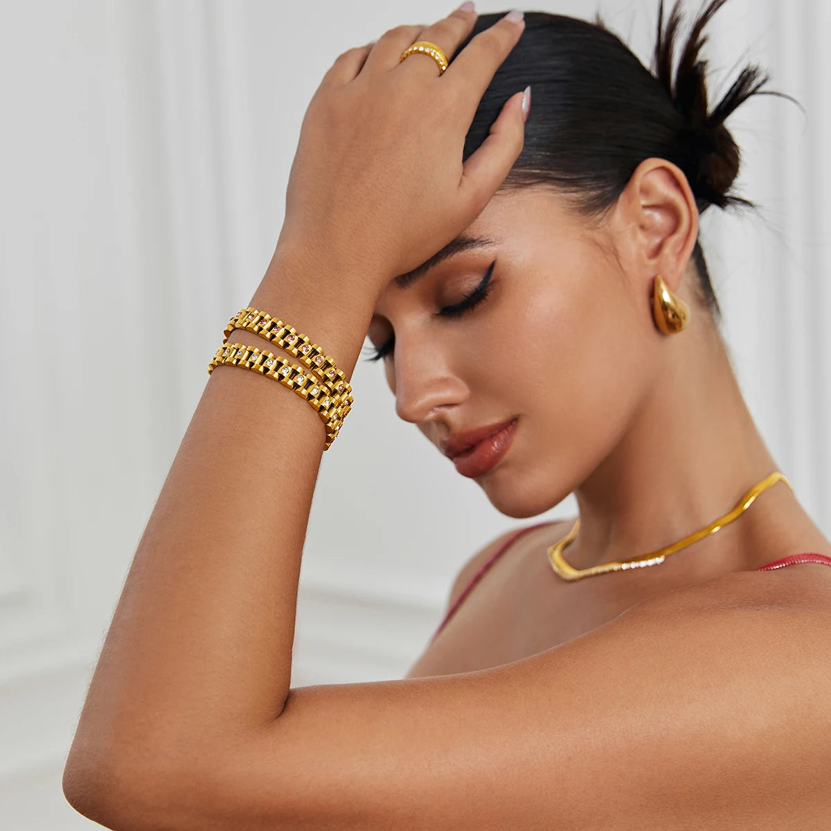 Eine harmonische Kombination aus feinen Zirkonsteinen und hochwertigem Edelstahl.
